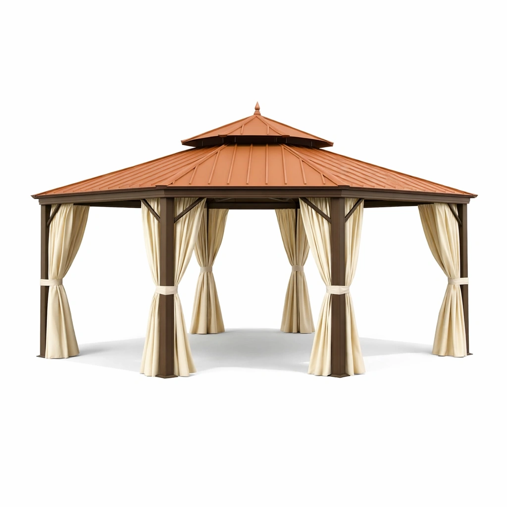 Gazebo in acciaio con tetto in alluminio e tende in poliestere
